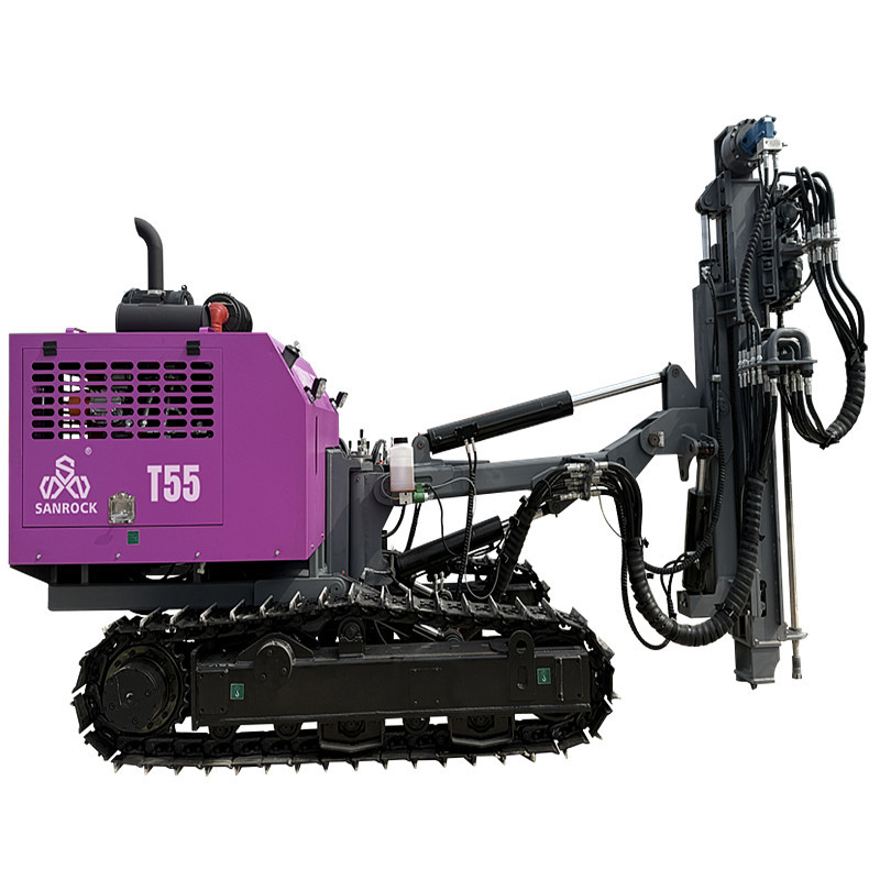 for efficient rock penetration in quarrying and mining operations. Featuring a powerful percussion hammer system, this heavy-duty equipment utilizes compressed air to deliver rapid hammer strikes through the drill string, enabling effective drilling in hard rock formations.