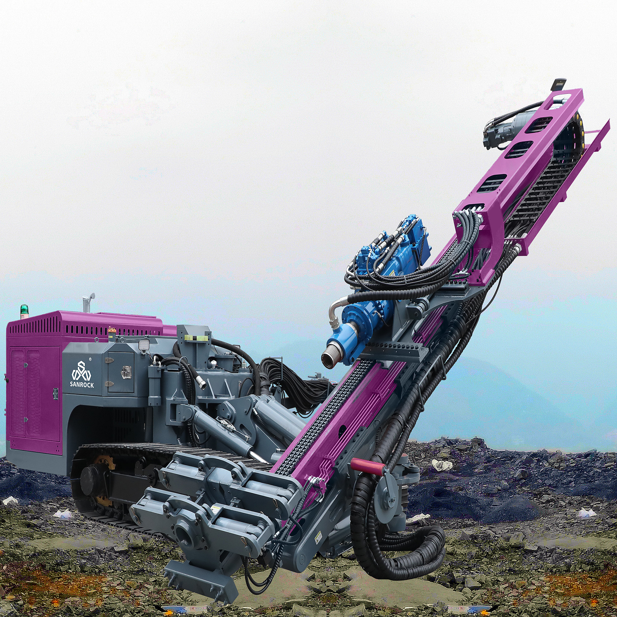 Em resumo, esta plataforma de perfuração DTH de 360° montada sobre esteiras combina mobilidade superior com flexibilidade incomparável. É um ativo indispensável para a mineração de superfície moderna, garantindo uma perfuração precisa, eficiente e rápida para operações de detonação controlada.